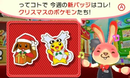 早くもクリスマスシーズン到来です。サンタさんのコスプレのピカチュウやイーブイがバッジになりました。ピカチュウの被り物はデリバードがモチーフですね。 リアルの方のポケモンセンターとのコラボレーションです。ポケモンたちはおもちゃ工場でお手伝い中…